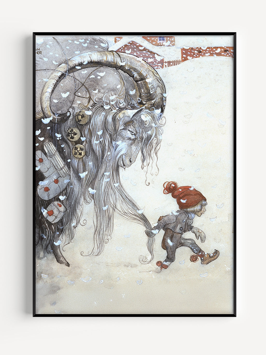 Detta är John Bauers älskade tolkning av den nordiska julens kanske viktigaste figur förr i tiden: Julbocken. Motivet är hämtat från sagan med samma namn (1912) och sprider en omedelbar känsla av nostalgi och julfrid.