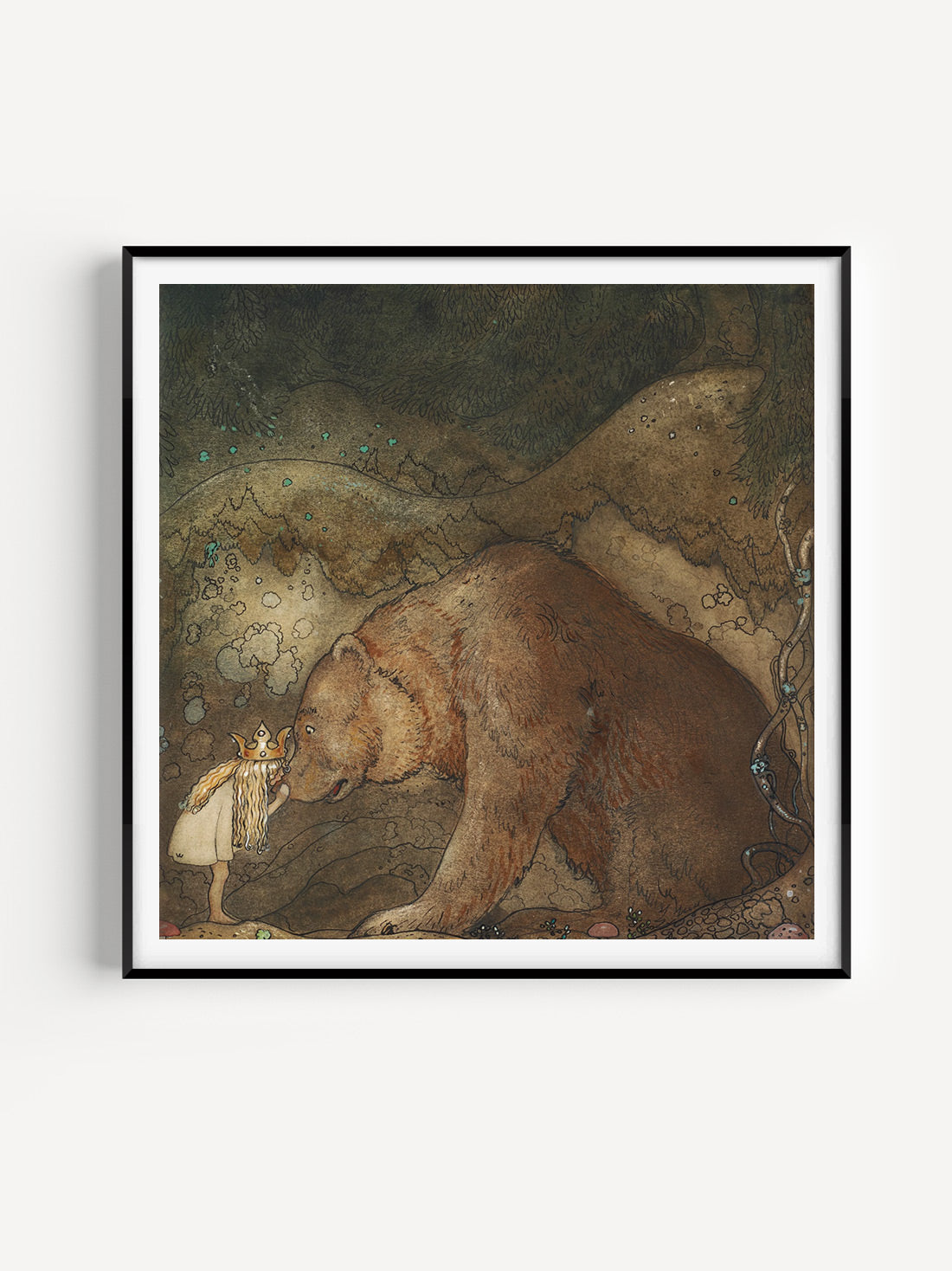 Detta är ett original från John Bauer men har bearbetats digitalt för att få bästa kvalitét i konsttryck. Observera att beskärning på dessa verk kan variera lite beroende på storlek, vill du i förväg veta exakt hur din poster kommer se ut, skriv en kommentar till din order så löser vi det innan den går till tryck.